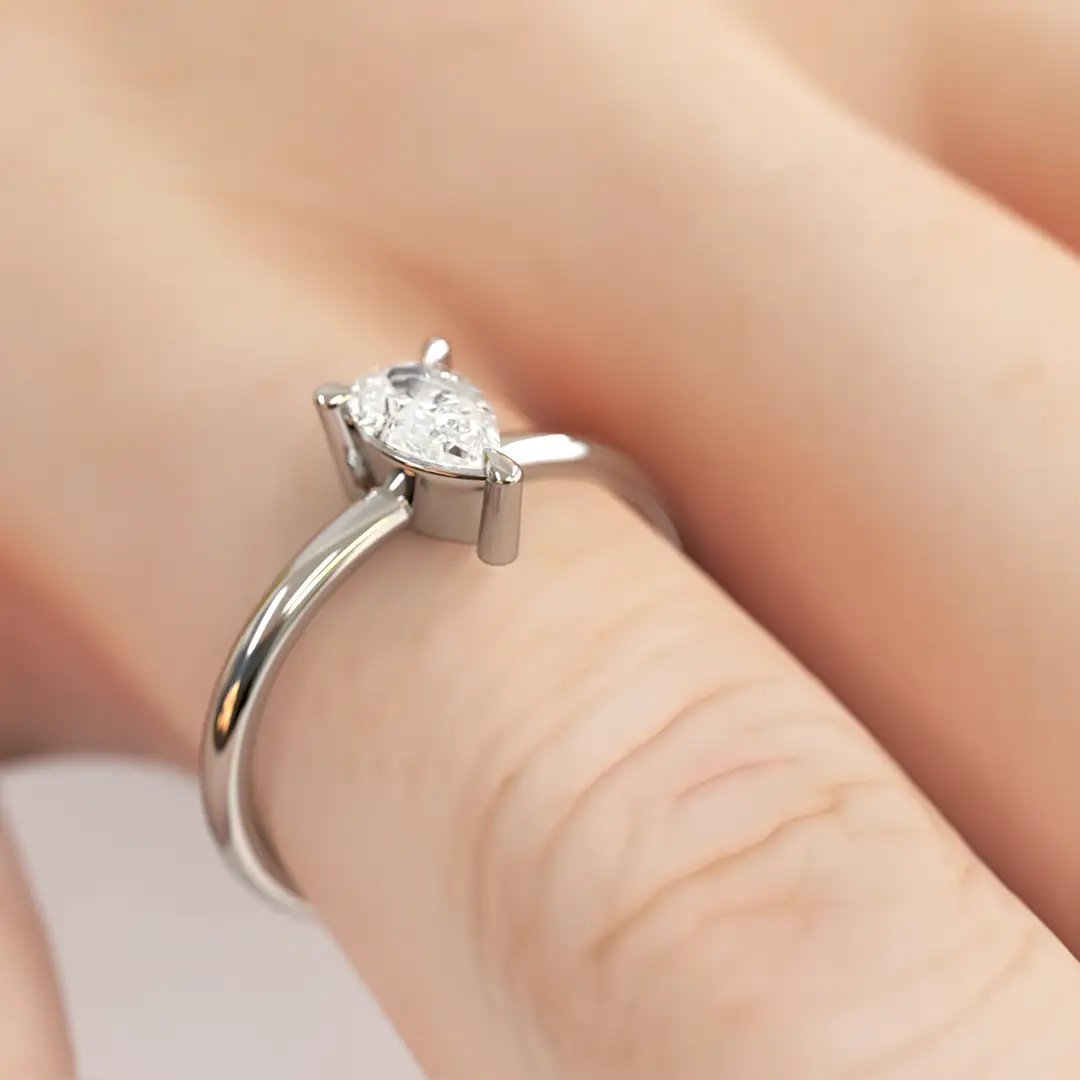 Nuestro anillo de compromiso MAO Stilla es una oda a la elegancia líquida. Su diamante en forma de gota, suspendido en un engaste delicado y fluido, evoca el instante en que una gota de agua se posa sobre la piel. El diseño, de líneas suaves y orgánicas, transmite serenidad y profundidad emocional.