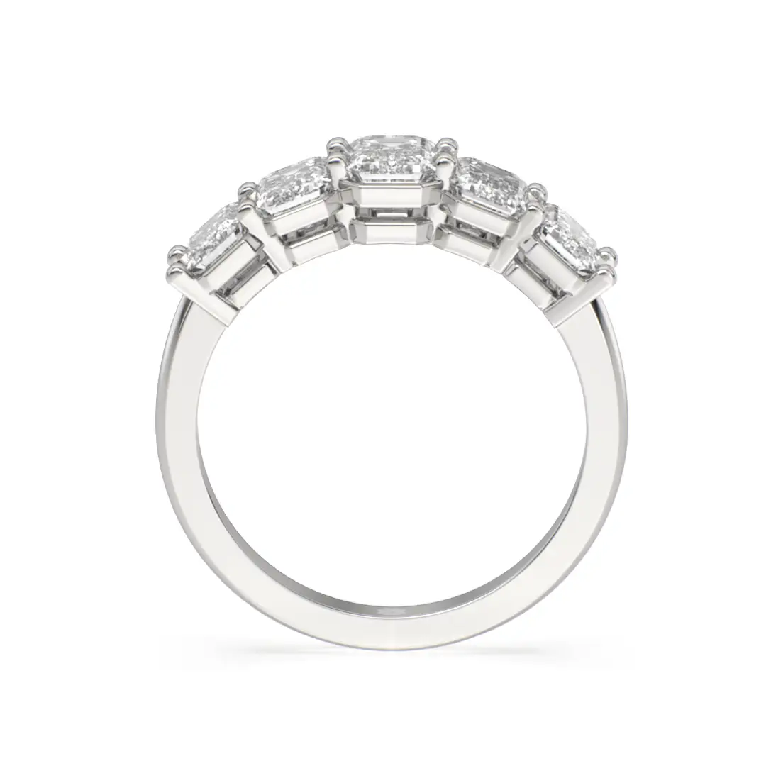 Descubre el anillo de compromiso MAO Verum, un quintillo de líneas sofisticadas que expresa elegancia, precisión y carácter atemporal. Su diseño se compone de cinco diamantes de corte esmeralda, dispuestos cuidadosamente para crear una composición limpia, equilibrada y de gran presencia visual.