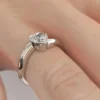 Nuestro anillo de compromiso MAO Amore es un solitario moderno, pensado para una novia romántica y auténtica que busca un diseño con fuerte carga emocional y una estética contemporánea. Su protagonista es un diamante de corte corazón, símbolo eterno del amor, que se integra con delicadeza en una estructura elegante y fluida.