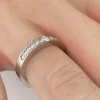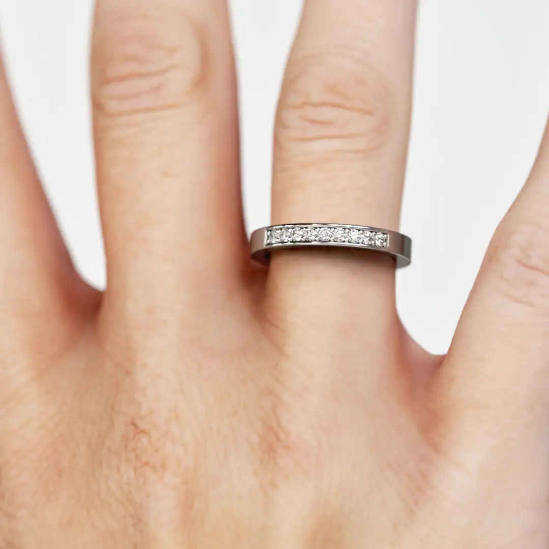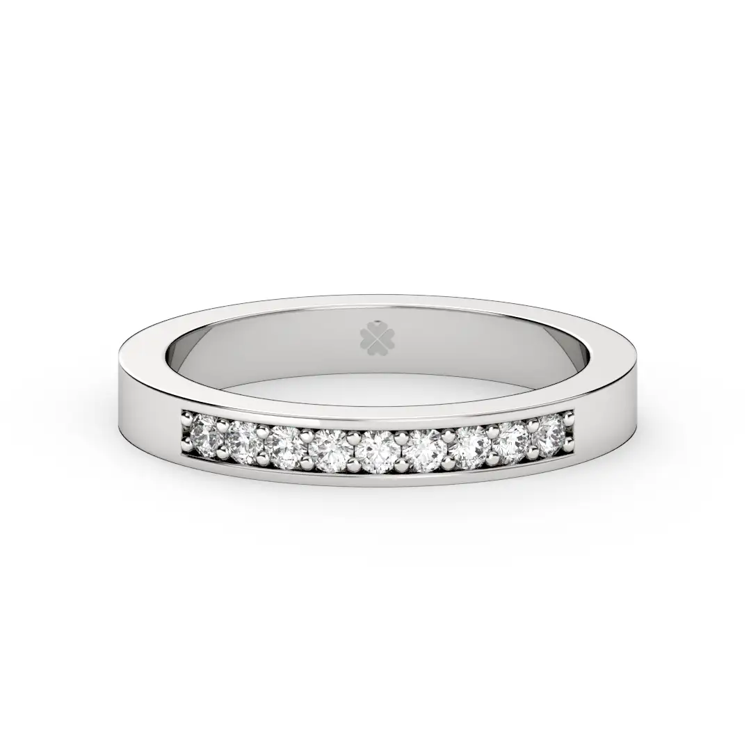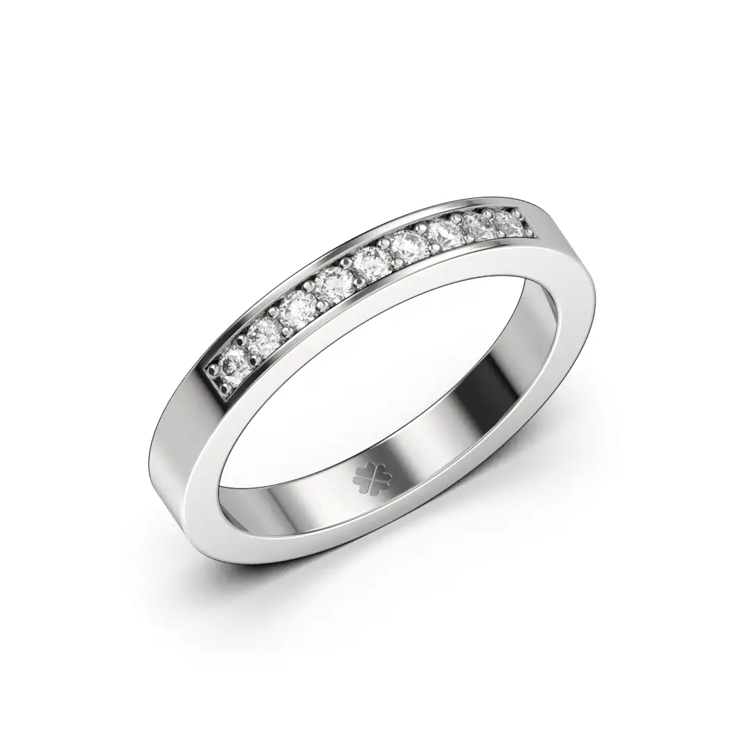 Descubre la elegancia contemporánea del Anillo Aidon, un cintillo de diamantes de diseño moderno y líneas limpias. Su estructura cómoda y minimalista se realza con una delicada ventana frontal que alberga 9 diamantes de corte brillante, permitiendo el paso de la luz y potenciando un brillo continuo y sofisticado.