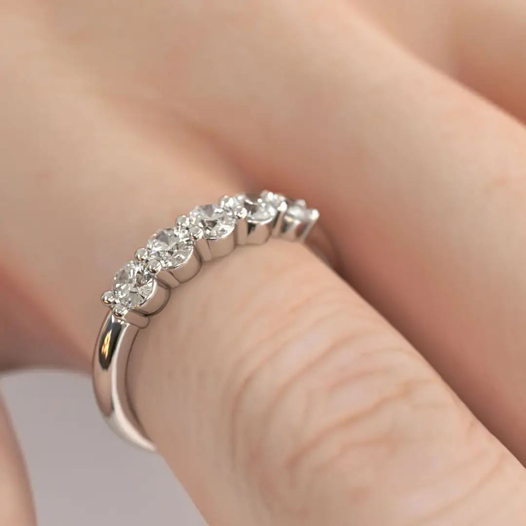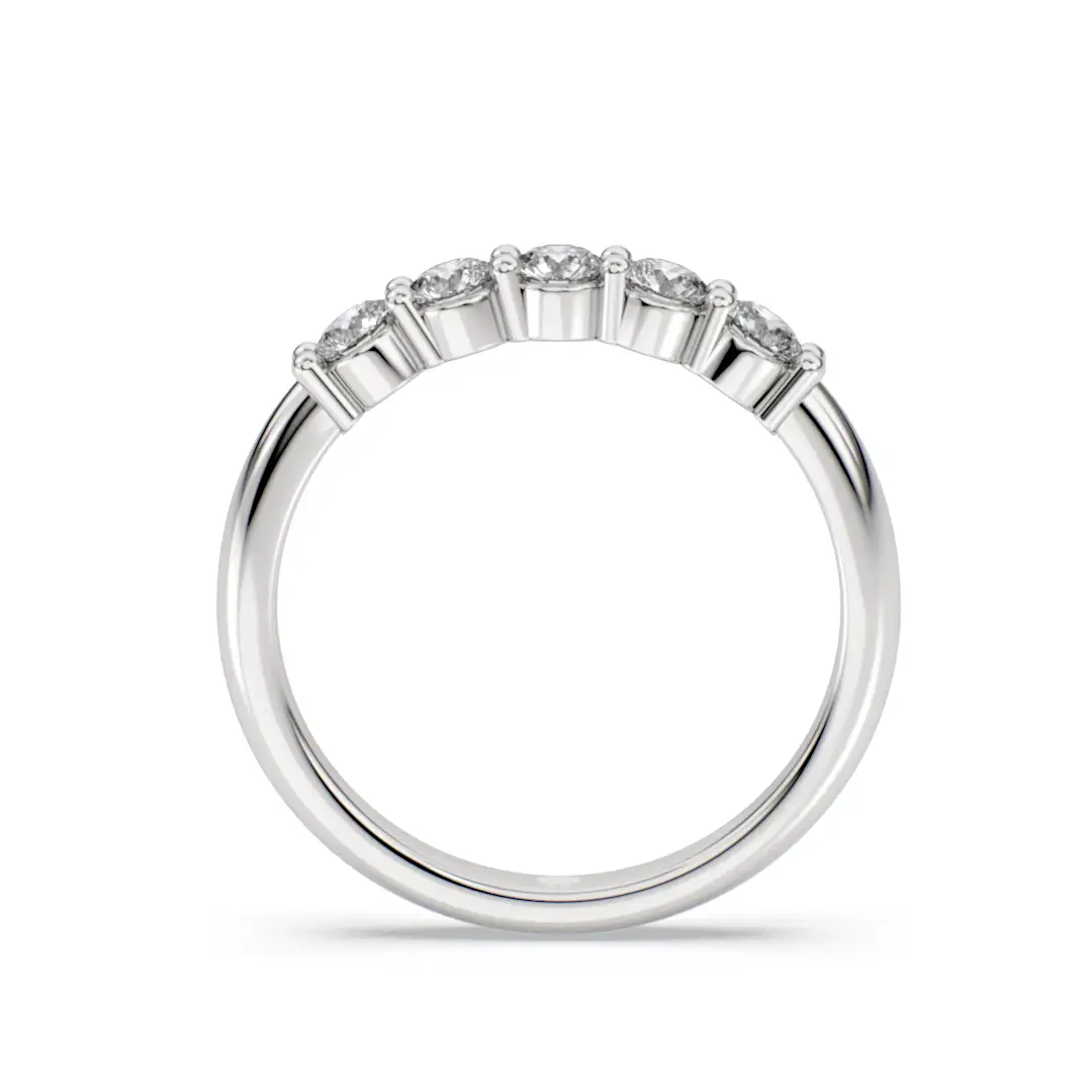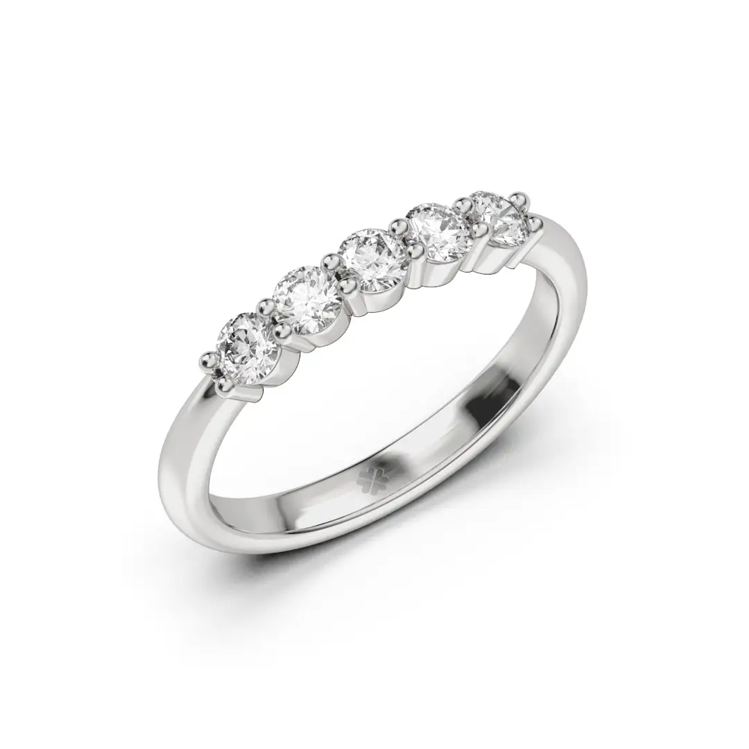 Descubre nuestro anillo de compromiso MAO Luxia, un quintillo moderno que destaca por su equilibrio perfecto entre diseño contemporáneo y brillo sofisticado. Su composición de cinco diamantes de corte brillante, todos del mismo tamaño, crea una línea continua de luz, logrando una estética armónica, limpia y elegantemente proporcionada.