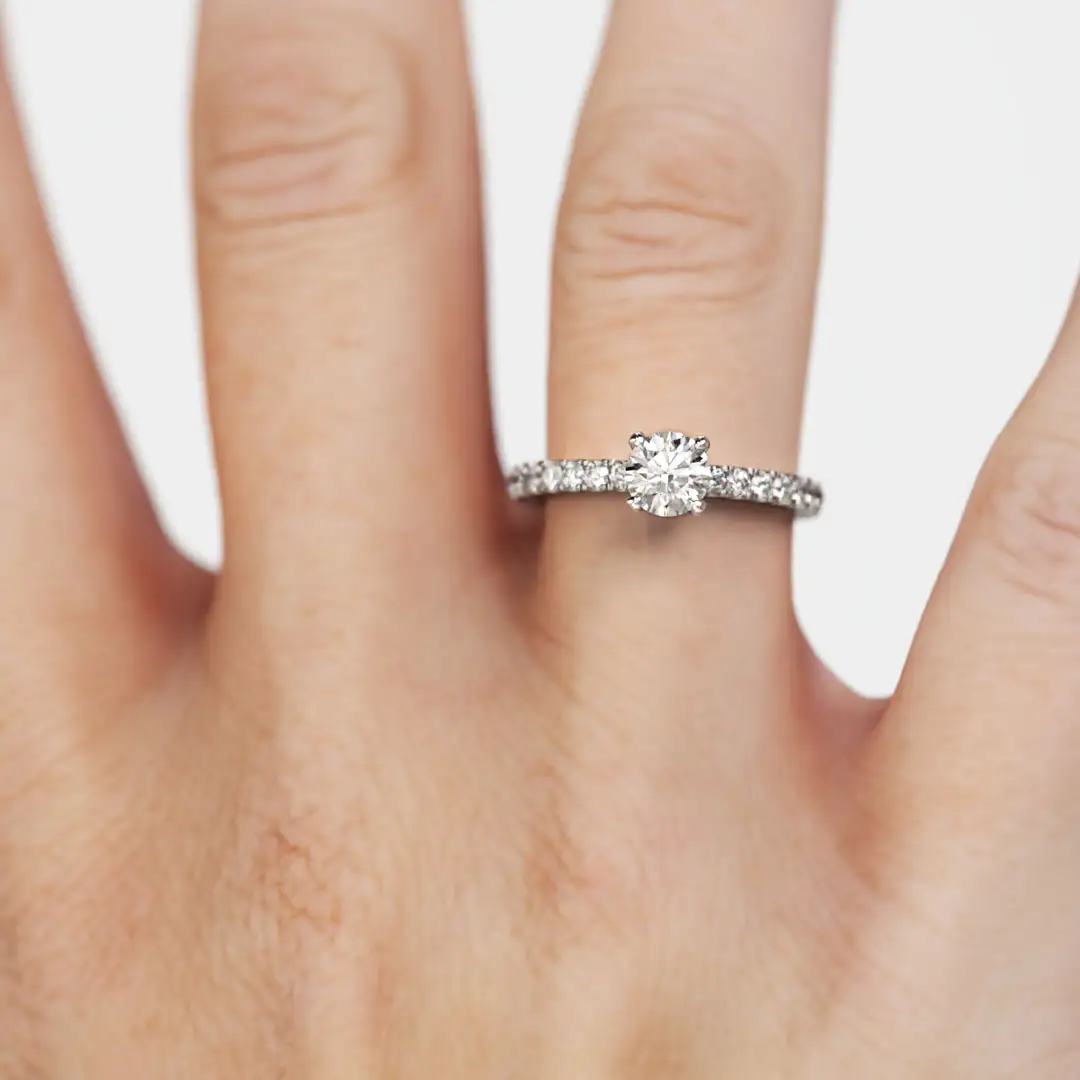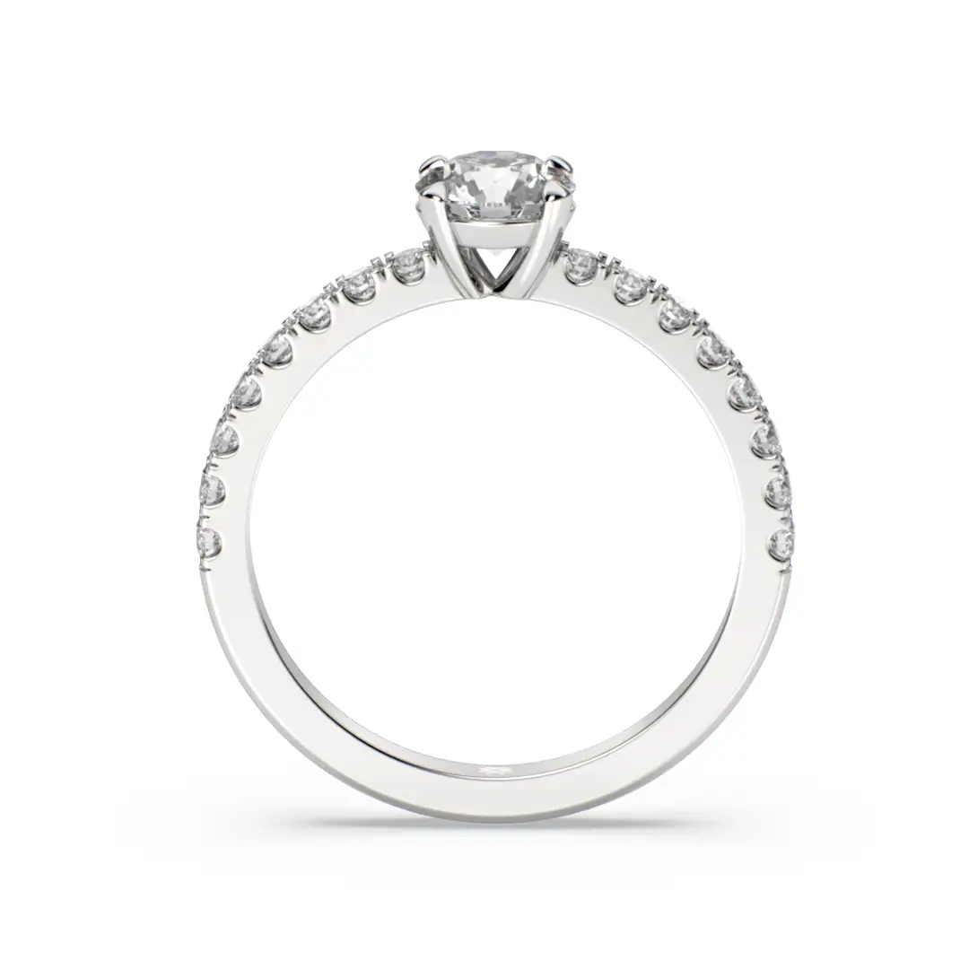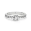 Descubre nuestro anillo de compromiso MAO Alba, un solitario neoclásico que se distingue por su elegancia luminosa y refinada. Su diseño delicado presenta un diamante central de corte brillante, protagonista absoluto, acompañado por una sutil línea de diamantes de corte brillante que recorre el cuerpo del anillo, aportando luz y sofisticación con perfecto equilibrio.