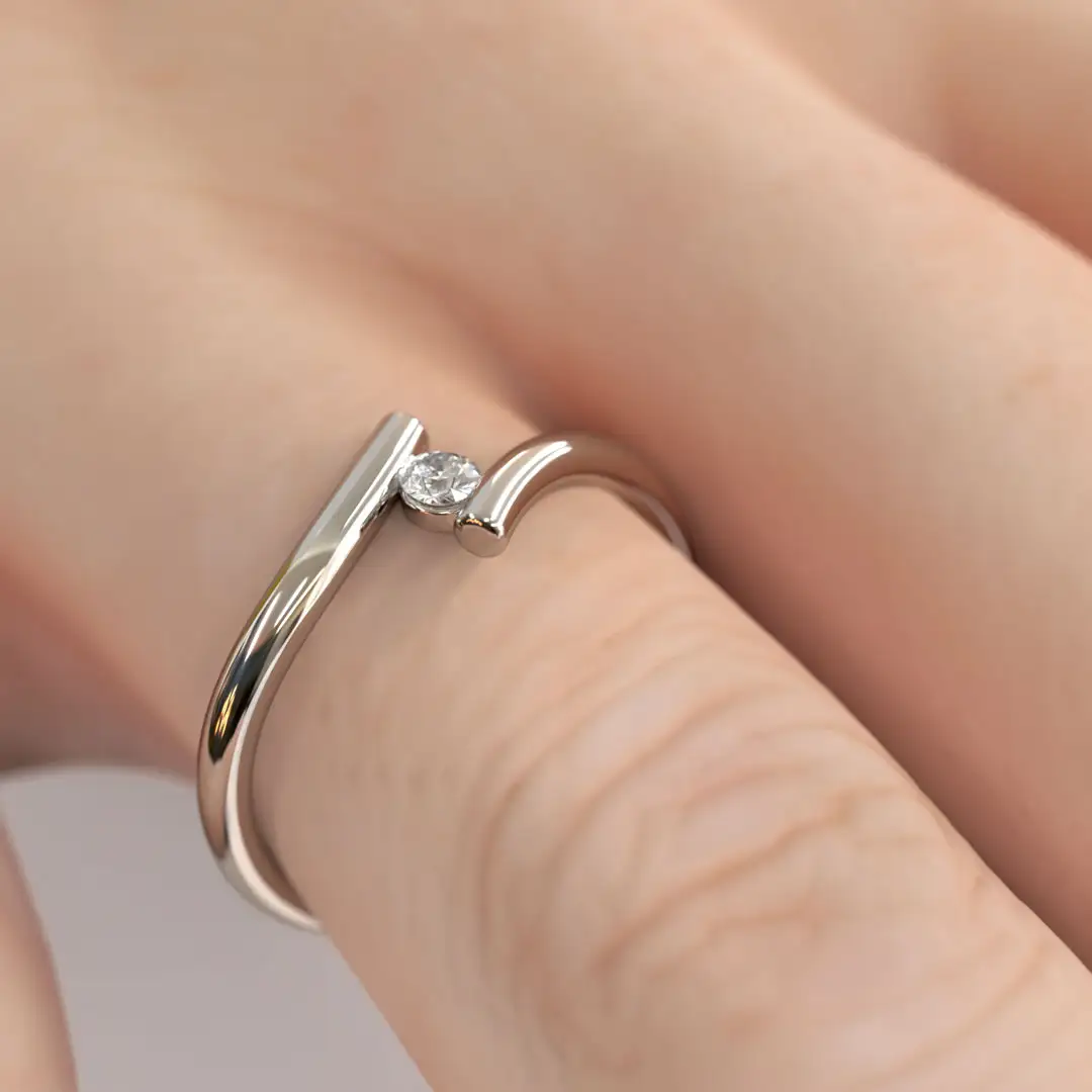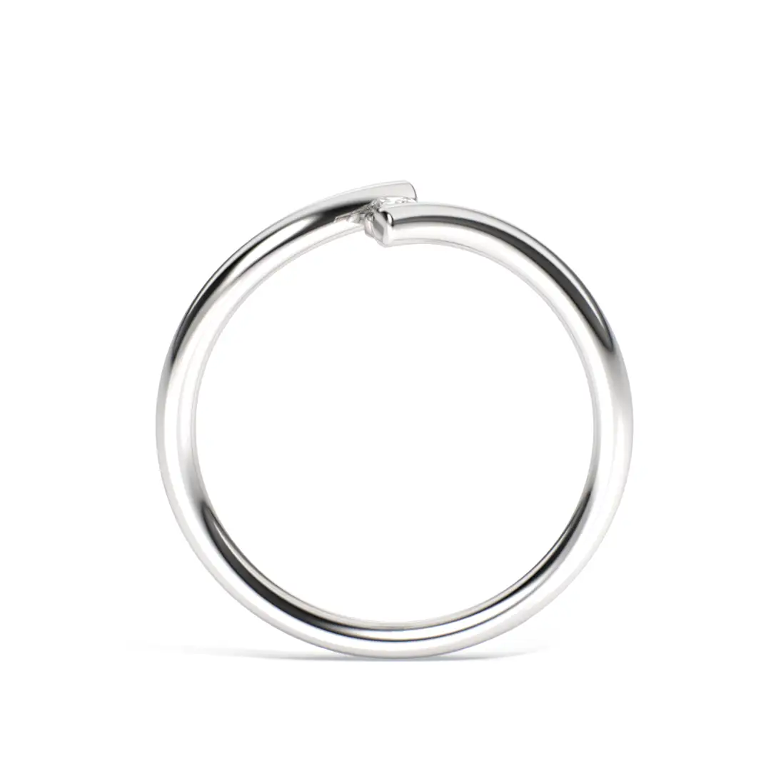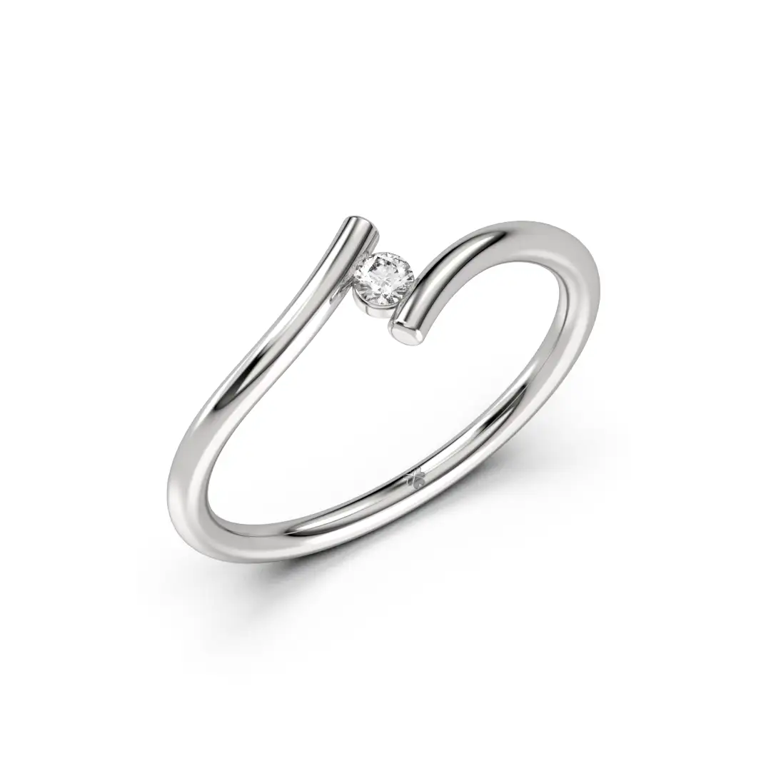 Nuestro anillo MAO Perpetua es un solitario de diseño orgánico y fluido, donde las líneas envolventes realzan la delicadeza del conjunto. Un diamante de corte brillante de 5 puntos se integra de forma sutil, aportando un destello equilibrado y elegante. Su silueta dinámica permite un perfecto acople con la futura argolla de matrimonio, convirtiéndolo en una joya atemporal que simboliza la continuidad del amor.