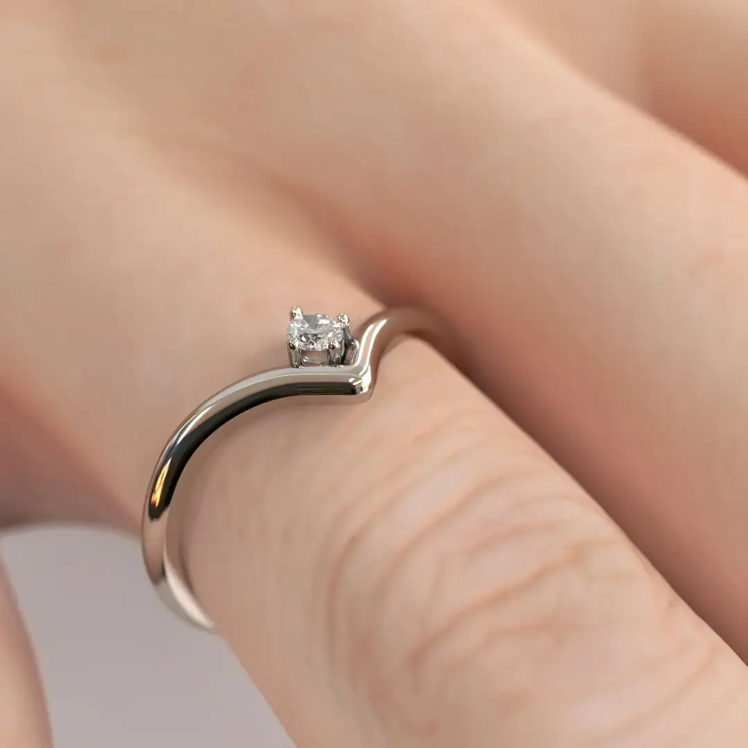 Nuestro anillo MAO Semper es un solitario de diseño elegante y definido, donde las líneas sutilmente anguladas aportan carácter y sofisticación. Un diamante de corte brillante de 5 puntos se posiciona como protagonista, realzando su brillo natural con un engaste delicado. Su forma permite un perfecto acople con la futura argolla de matrimonio, convirtiéndolo en una joya atemporal que simboliza un amor firme y perdurable.