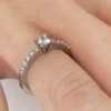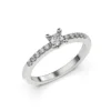 Nuestro anillo de compromiso MAO Splendia es un solitario de líneas refinadas que destaca por su elegancia atemporal y su delicado equilibrio de brillo, ideal para una novia clásica y sofisticada. Su diseño estilizado presenta un diamante central de mayor tamaño, realzado por una fila de 10 diamantes corte brillante de 1 pto cuidadosamente engastados a cada lado, aportando luminosidad sin perder ligereza visual.