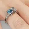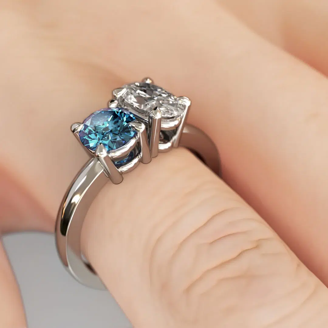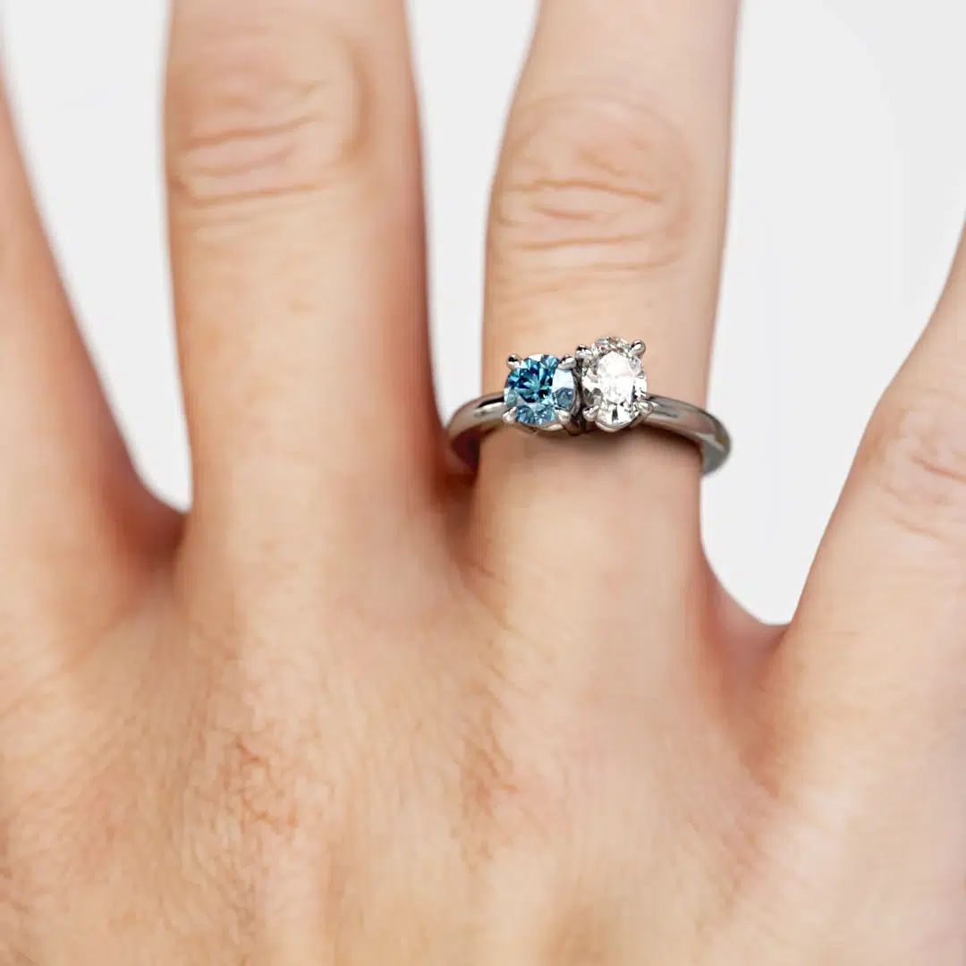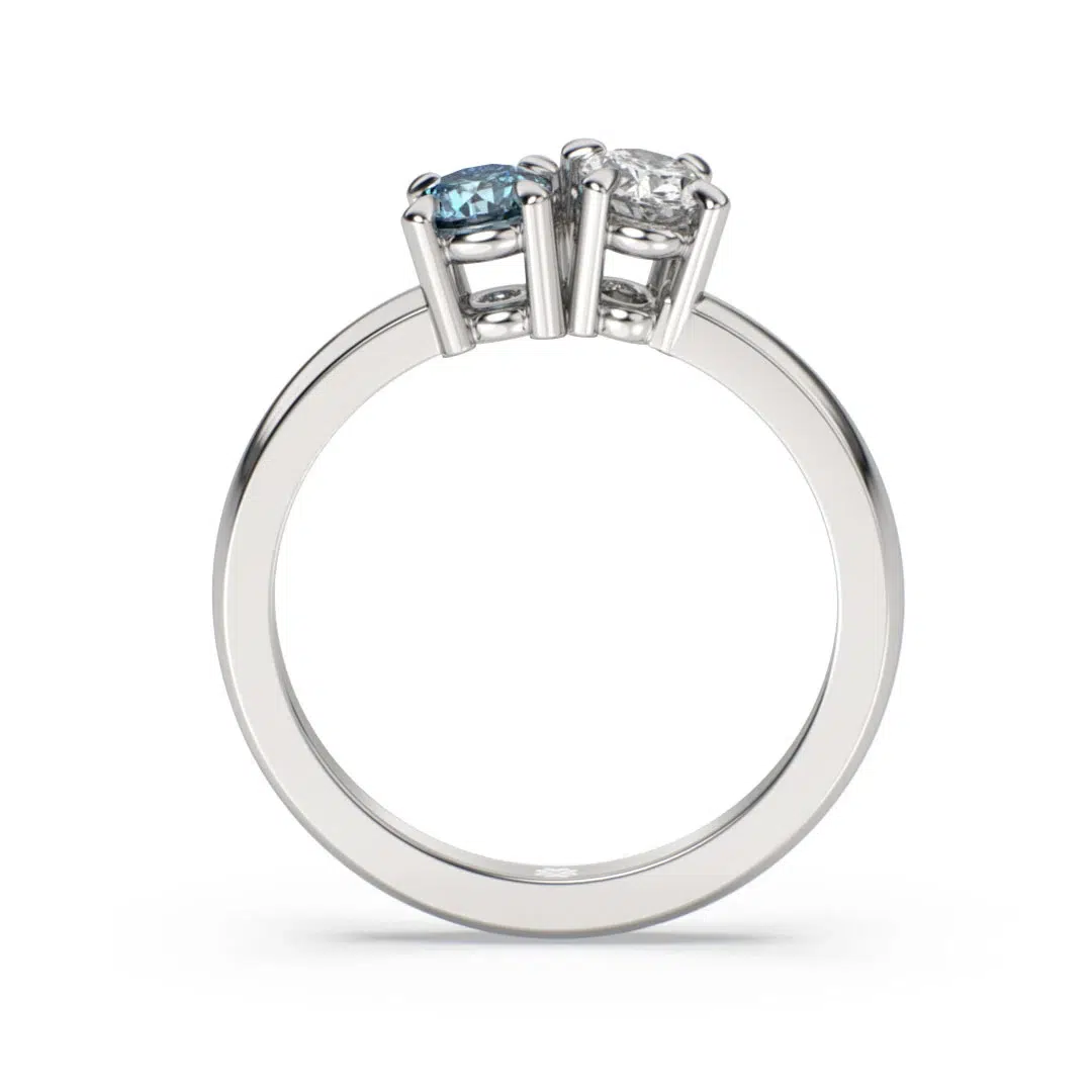 Anillo MAO Radys Blue Platino 950 Responsable: modernidad y originalidad con un toque vibrante Un solitario neoclásico, protagonizado por un diamante azul corte brillante y otro ovalado, creando un diseño dinámico e innovador. Perfecto para la novia sofisticada que busca un estilo único y distintivo.