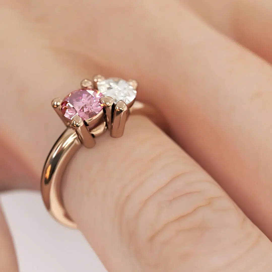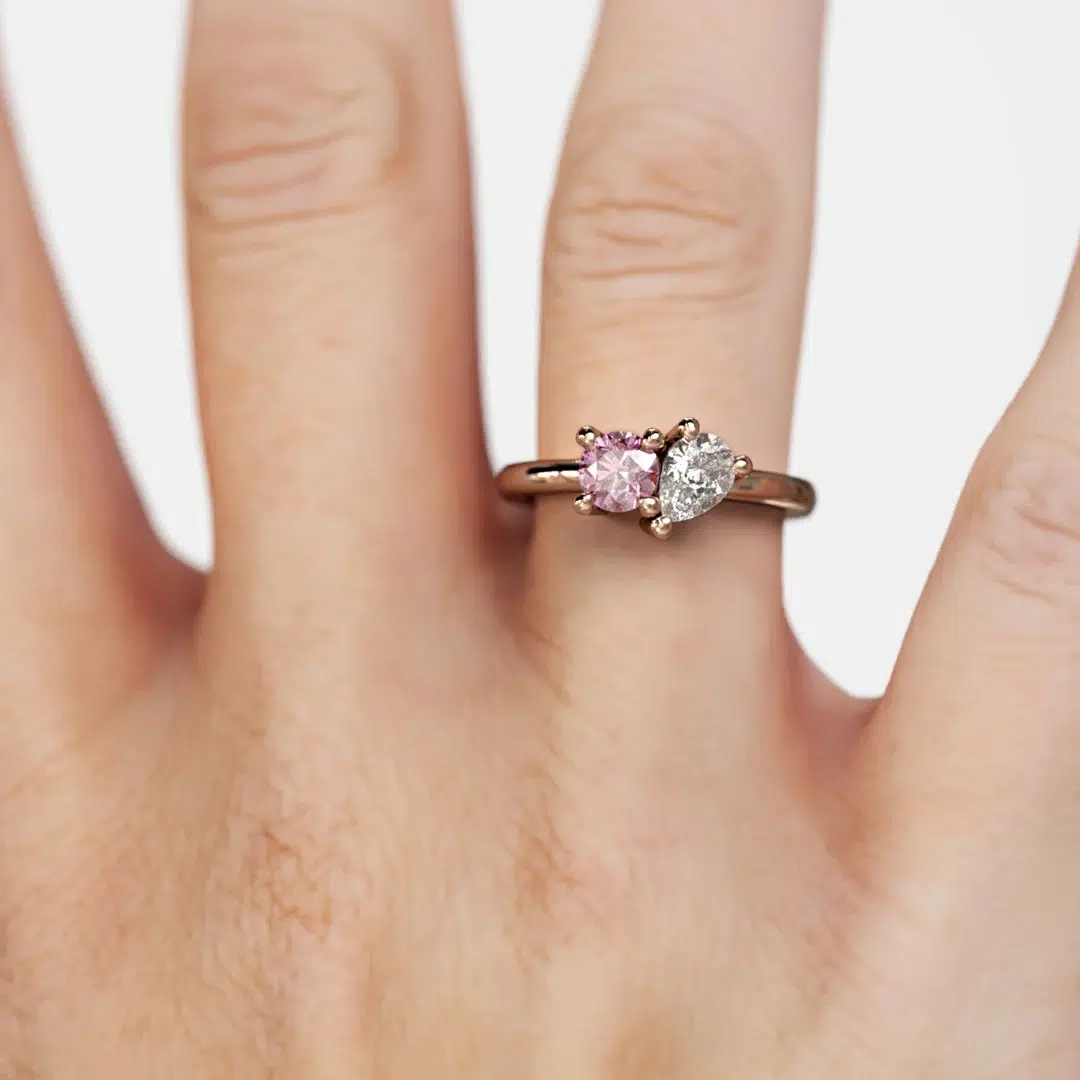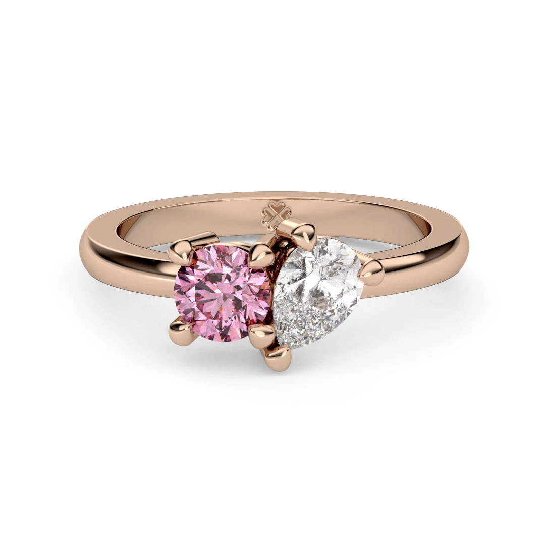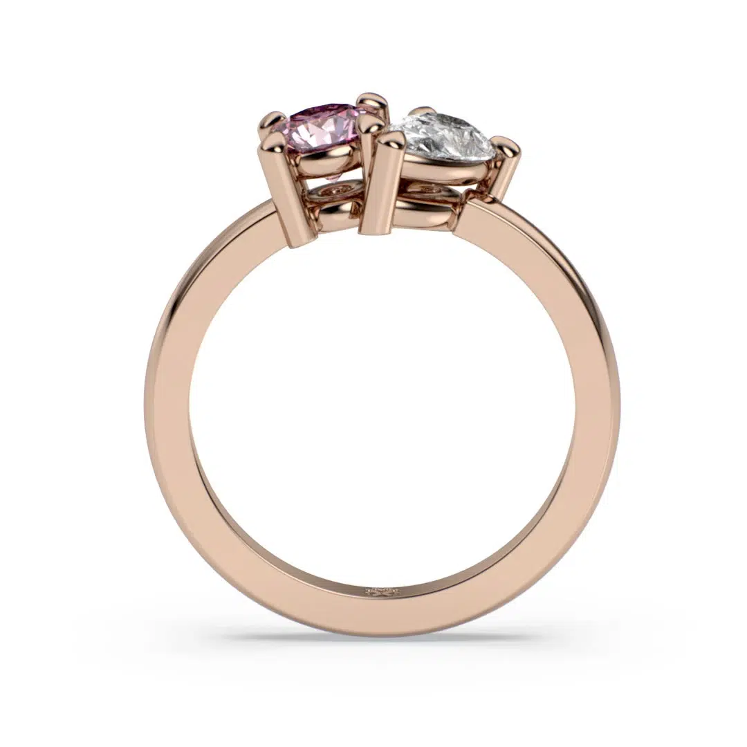 Anillo MAO Caprys Pink Oro Rosa 18kt: distinción y simbolismo en un diseño moderno Un solitario contemporáneo, con un diamante corte brillante rosa y otro de corte gota, que simbolizan la unión y compromiso. Ideal para la novia sofisticada que busca un estilo único y deslumbrante.