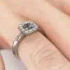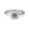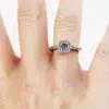Anillo MAO Galea Blue Platino 950 Responsable: exuberancia y sofisticación con un brillo cautivador Un solitario luminoso y llamativo, con 12 diamantes corte brillante que sostienen una impresionante cabeza central, diseñado para la novia extrovertida que busca elegancia y distinción.