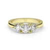 Diseño neoclásico y elegante, protagonizado por una trinidad de diamantes corte brillante que se potencian mutuamente para un brillo excepcional. Perfecto para la novia distinguida que busca modernidad y sofisticación.
